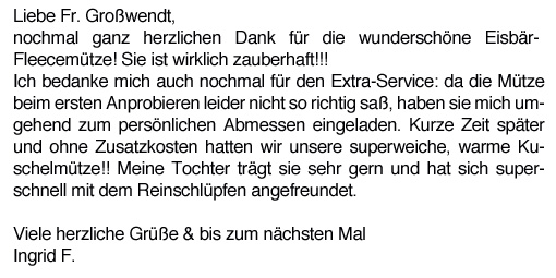 Ob Pullis, Jacken, Mützen oder Dirndl - ich erweitere regelmäßig mein Sortiment, da mir die Ideen nur so aus dem Kopf fallen!